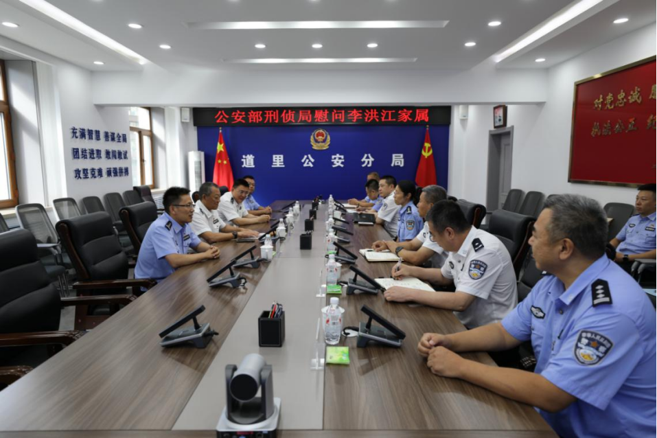 (省公安厅刑事技术总队总队长顾明波、刑侦总队副总队长史云鹏、道里分局政委张庆新等领导陪同慰问)